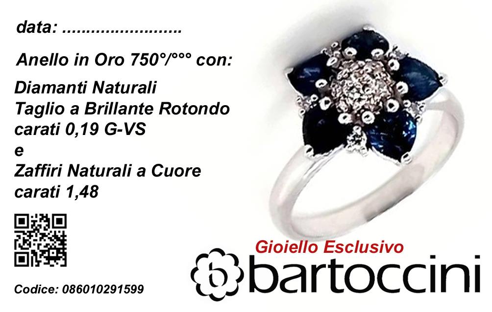 Anello fiore in Oro Bianco 18 KT con Zaffiri naturali taglio cuore 1.48 CT e Diamanti naturali taglio brillante 0.19 CT G-VS