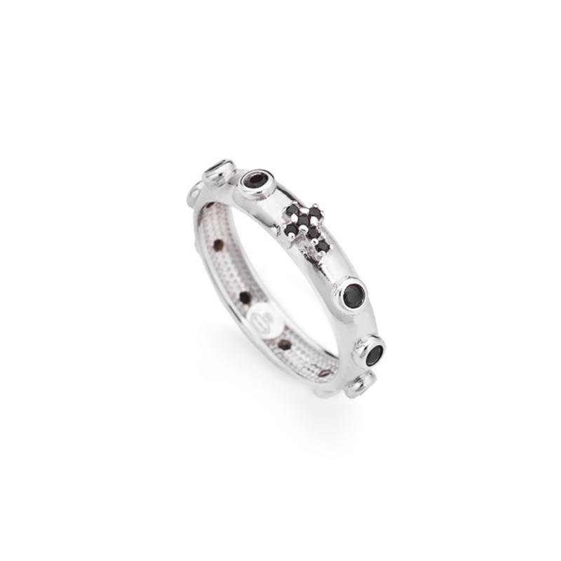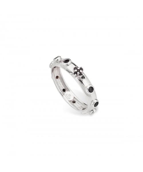 Anello Rosario AG925 e zirconi neri - Misura 18 - Rodio
