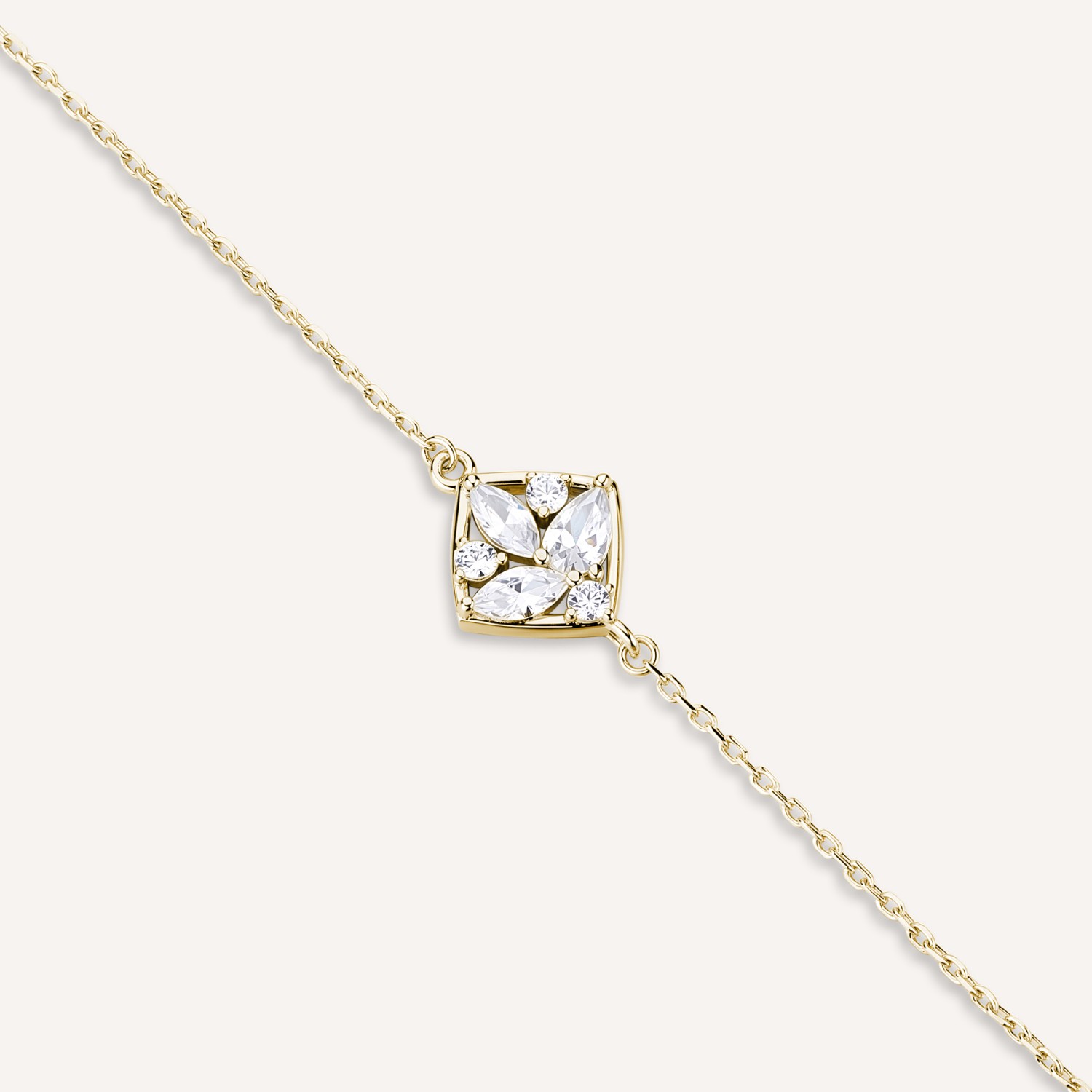 Bracciale morbido in argento 925‰, placcatura oro giallo, 6 cubic zirconia bianchi