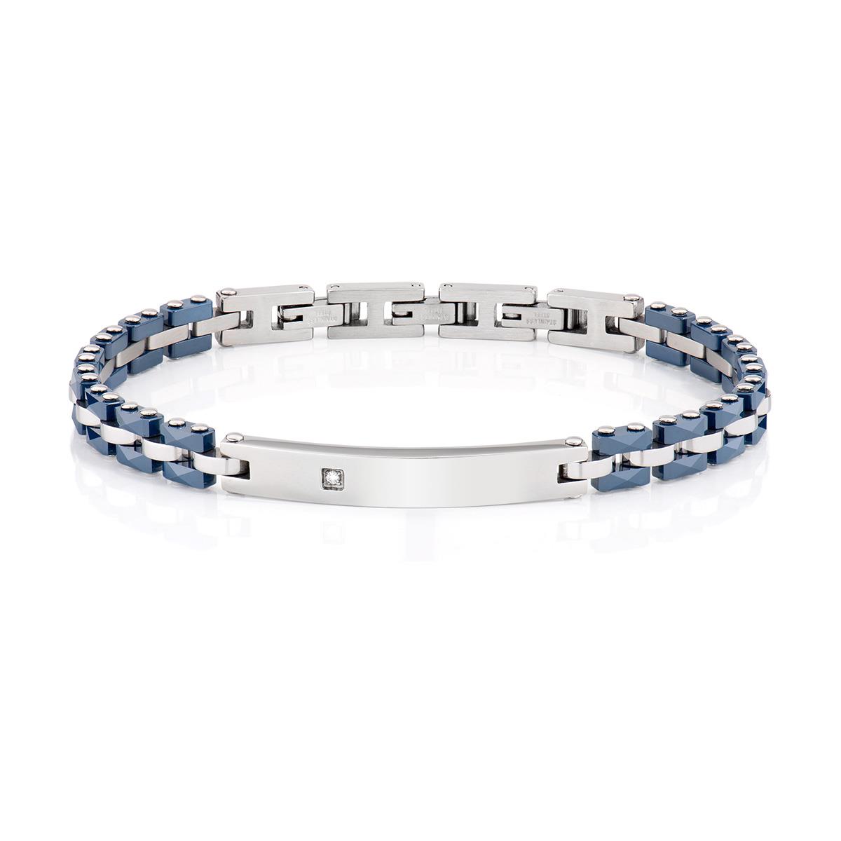 Bracciale in Acciaio, Ceramica Nera e Diamante Bianco - Amen Collection Ref. ACBR1299 - AMEN