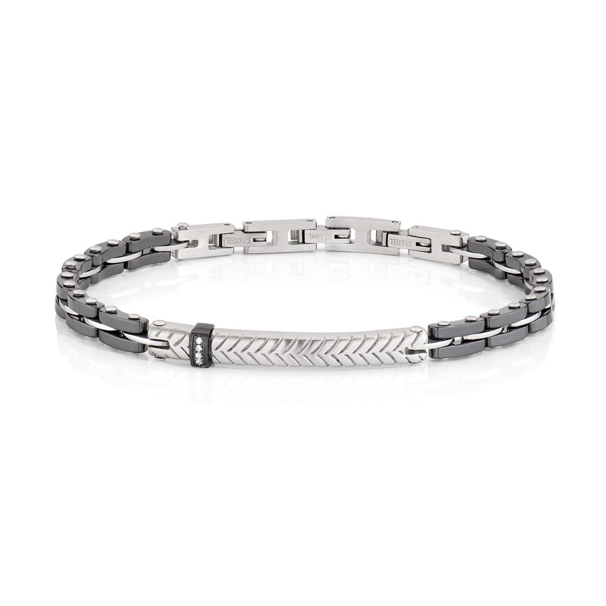 Bracciale in Acciaio, Ceramica e Zirconi Bianchi - Amen Collection Ref. ACBR1302 - AMEN