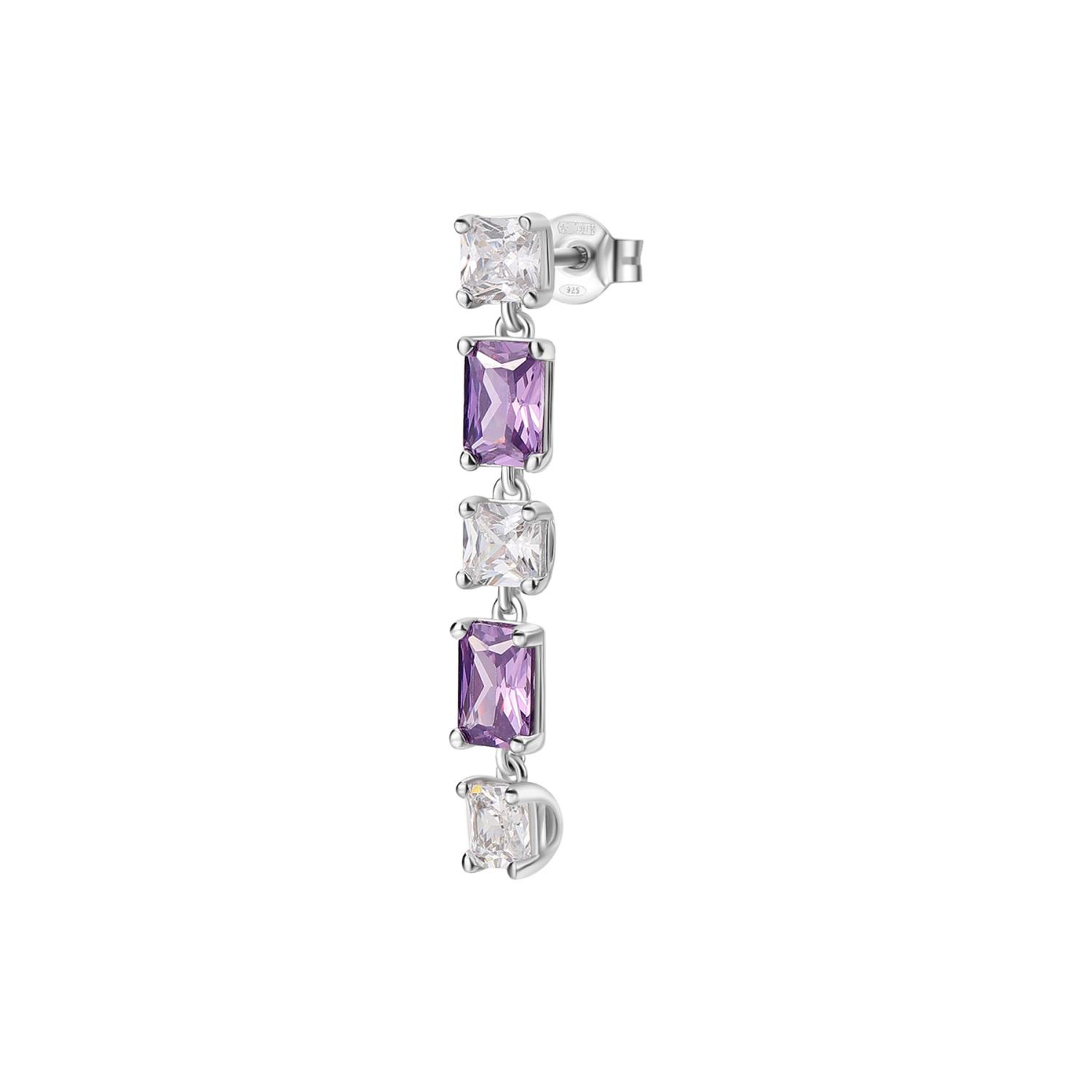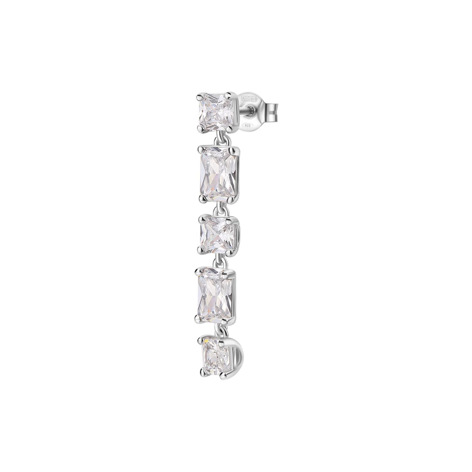 Orecchino singolo rettangolo in Argento 925‰, 11 cubic zirconia bianchi