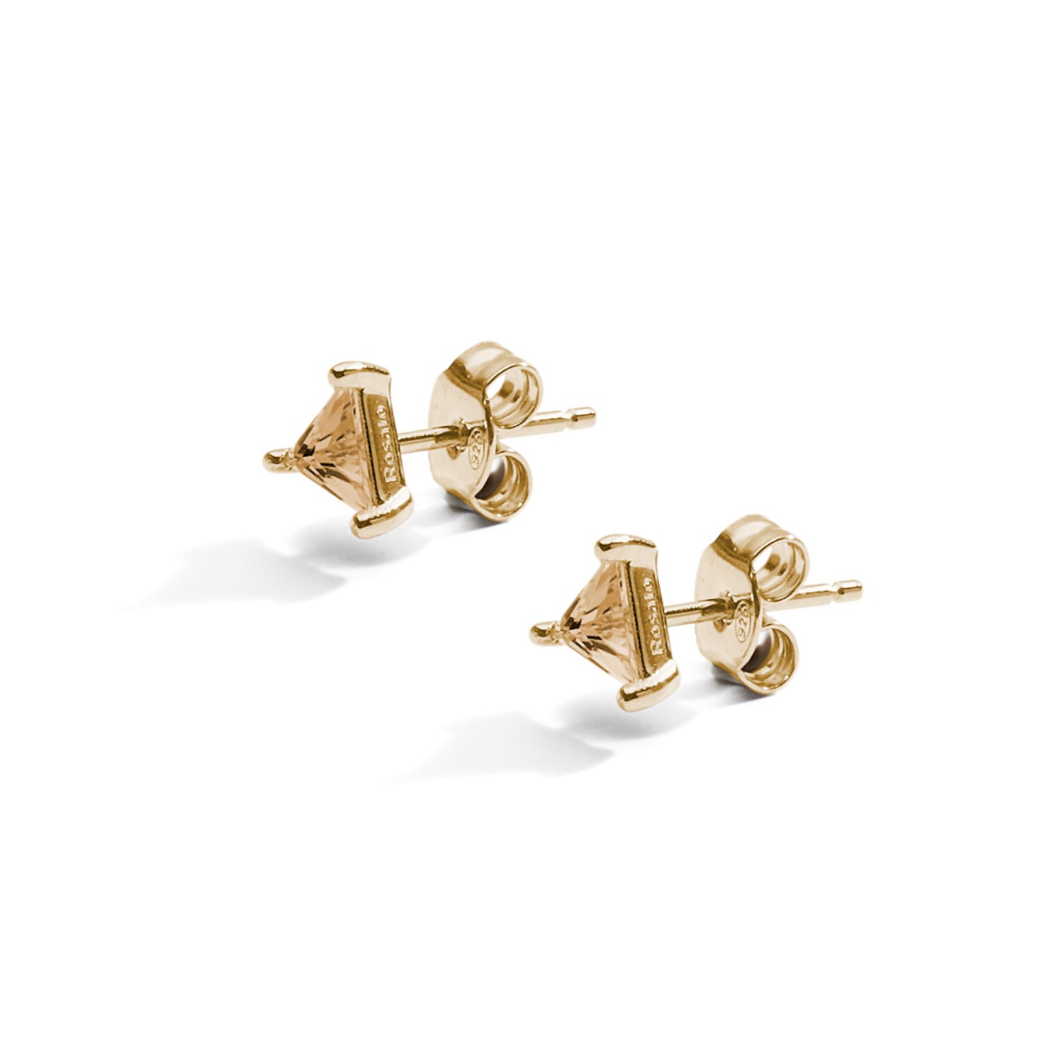 Orecchini lobo in argento 925‰, placcatura oro giallo, 2 cubic zirconia champagne