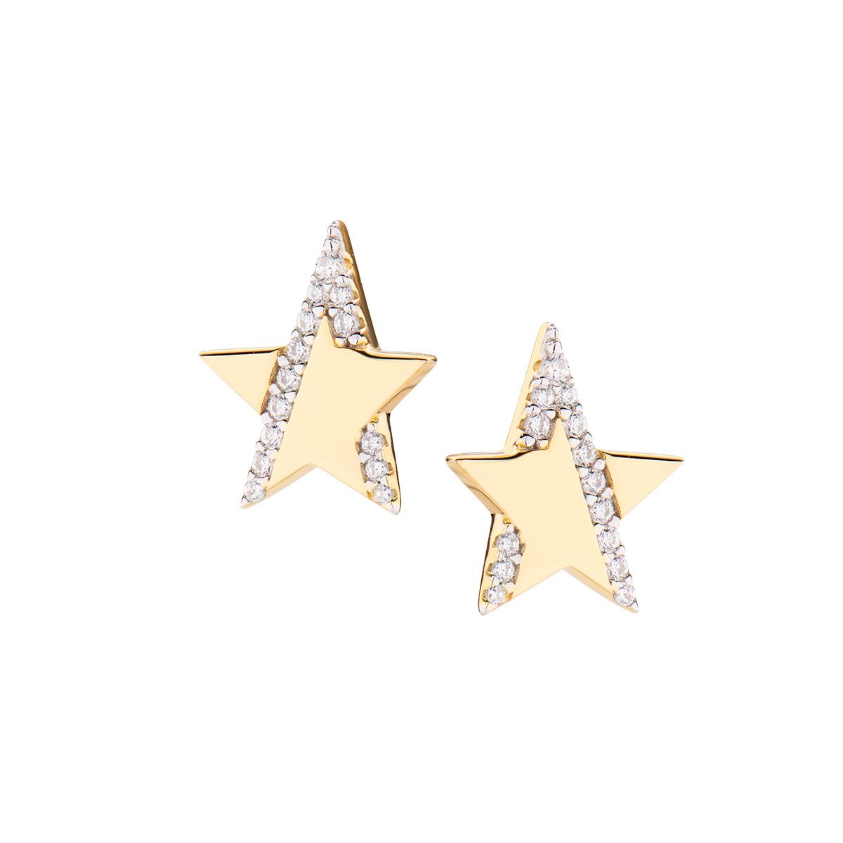 Orecchini Stella Flat in Argento Dorato con Zirconi - Amen Collection Ref. ESTLGBZ