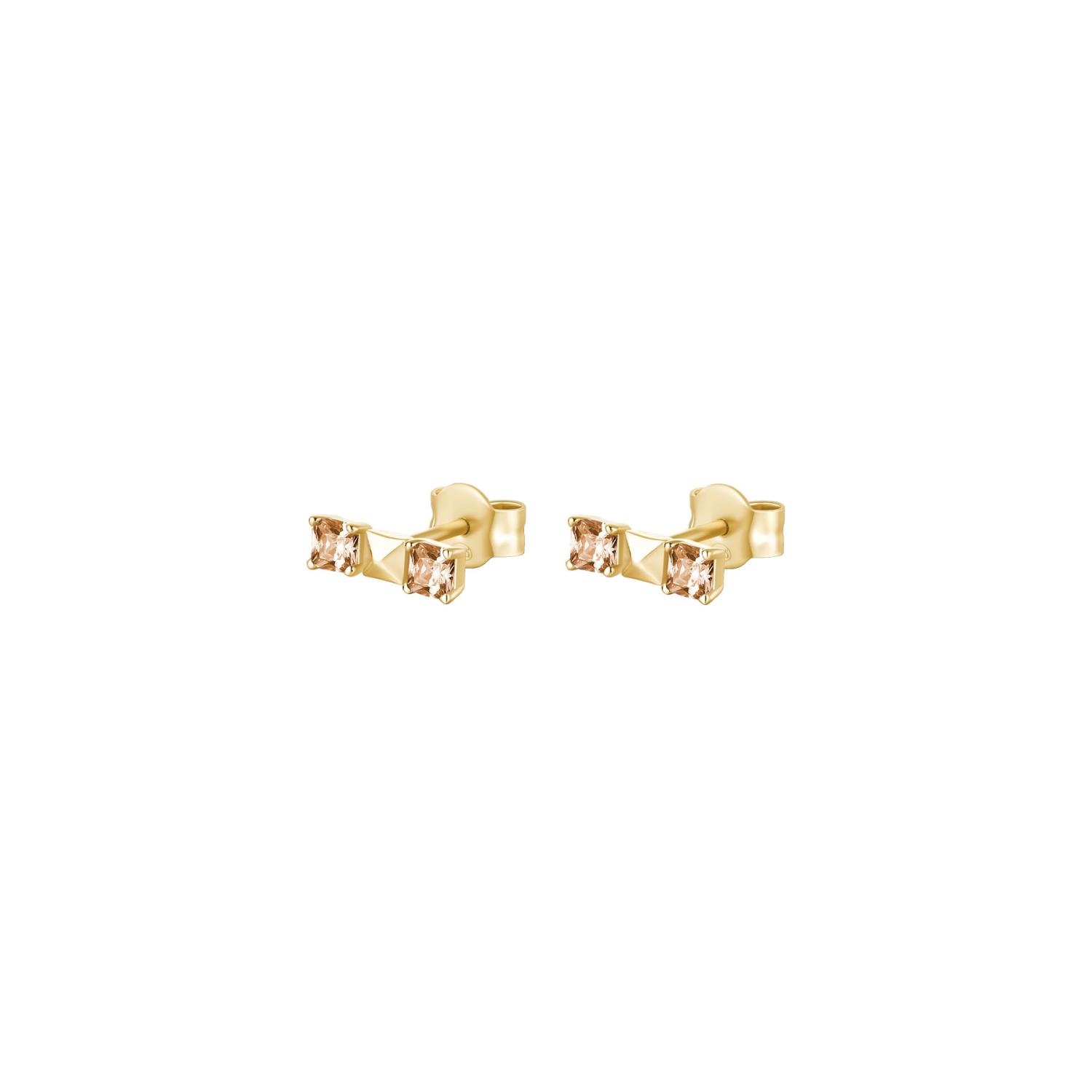 Orecchini lobo in Argento 925‰, placcatura oro giallo, 4 cubic zirconia champagne