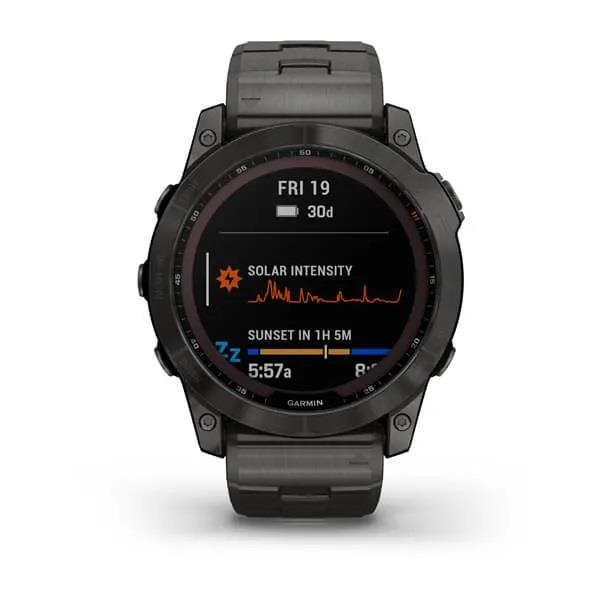 Orologio Garmin Fēnix 7X – Sapphire Solar Edition con bracciale Vented Titanium Carbon Grey DLC Ref. 010-02541-27