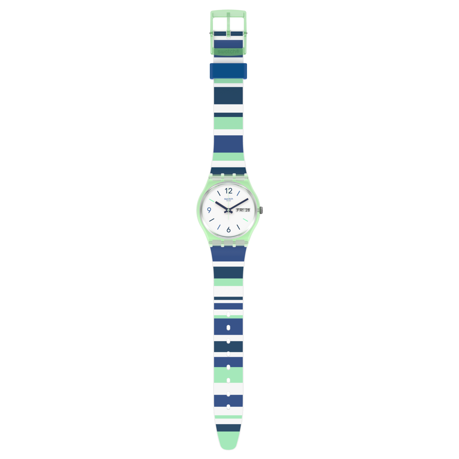 Cassa in Plastica di colore Verde trasparente e di forma Rotonda -Cinturino in SILICONE di colore Multicolore