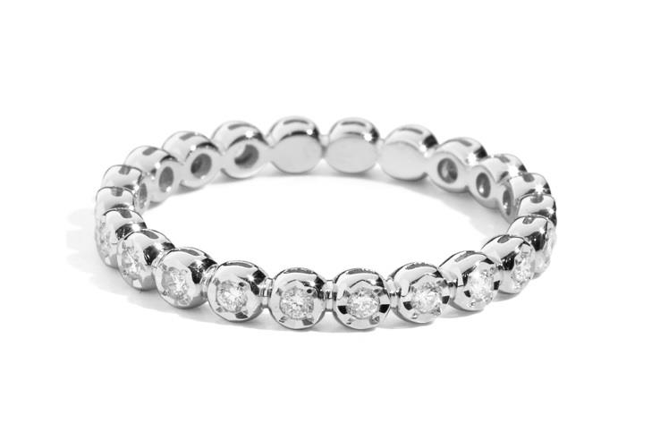 Anello in Oro Bianco 18 kt con Diamanti naturali taglio brillante 0,25 ct G-VS e Rubini centrali 0,40 ct