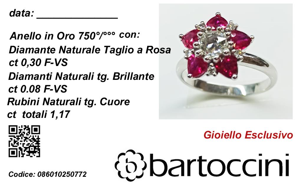 Anello Rosa in Oro Bianco 18 kt con Rubini taglio cuore 1,17 ct e Diamanti naturali taglio brillante 0,30 ct