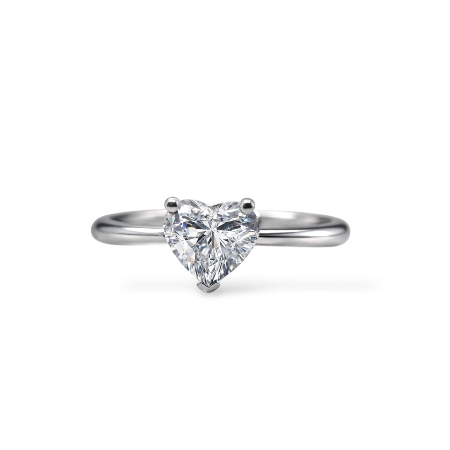 Anello solitario modello 4 punte in Oro Bianco 18 kt con Diamante naturale taglio Cuore 1.02 ct F-SI1 LASER