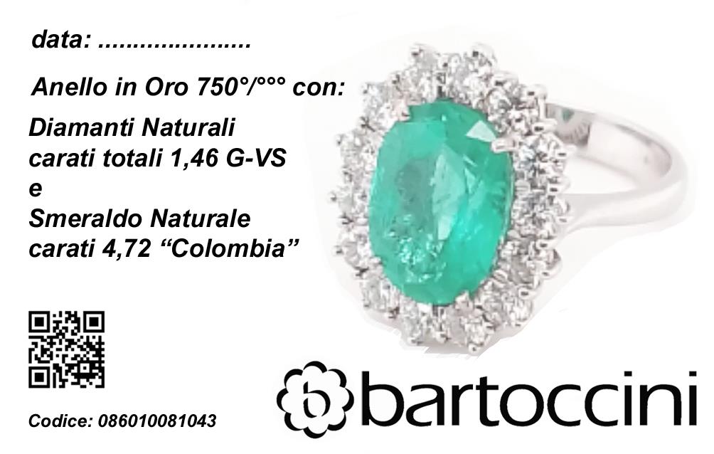 Anello in Oro Bianco, Smeraldo e Diamanti Naturali  Ref. 086010081043 - BARTOCCINI C