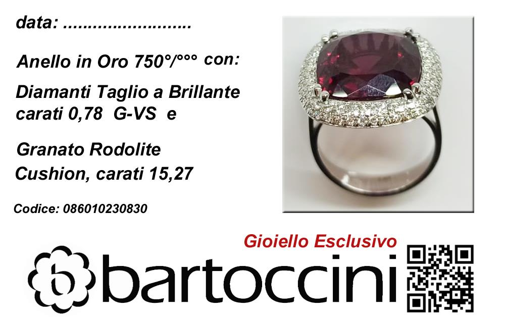 Anello in Oro Bianco 18 kt con Rodolite taglio Cushion 15,27 ct e Diamanti naturali taglio brillante 0,78 ct G-VS