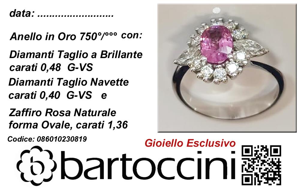 Anello in Oro Bianco 18 KT con Zaffiro Rosa centrale taglio ovale 1.36 CT