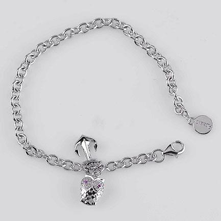 Bracciale con ancora e gufo, con zirconi bianchi e rossi.