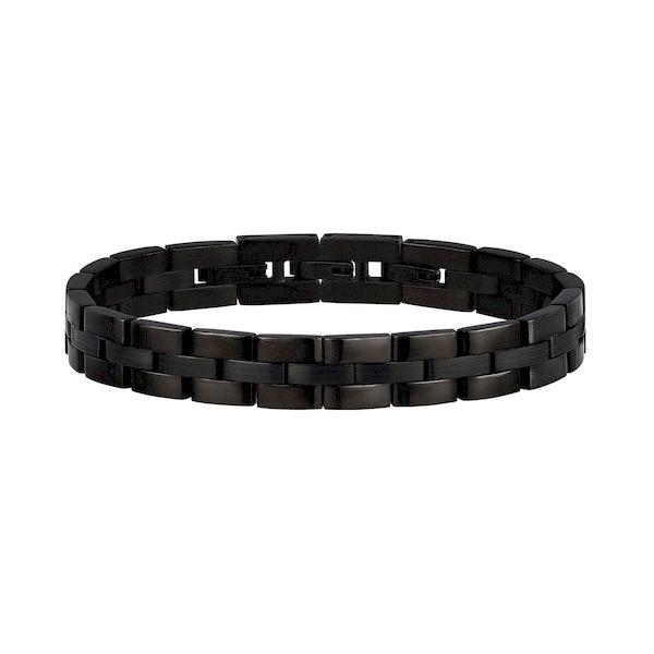 In acciaio IP black lucido a tre maglie, con sezione centrale satinata, chiusura a gioielleria - lunghezza totale 20,3 cm regolabile a 17,5 cm