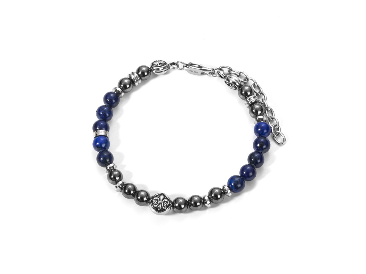 Bracciale collezione Artisan Flower in Ematite e Lapislazzuli con Giglio centrale. - Collezione: Primavera Estate 19