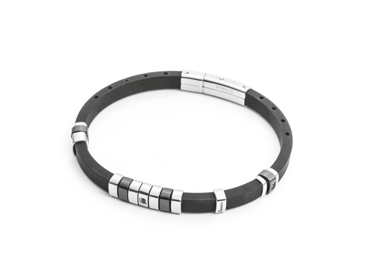 Description: Bracciale collezione Breeze in Caucciù nero, con passanti acciaio e neri e zirconi neri. - Collezio