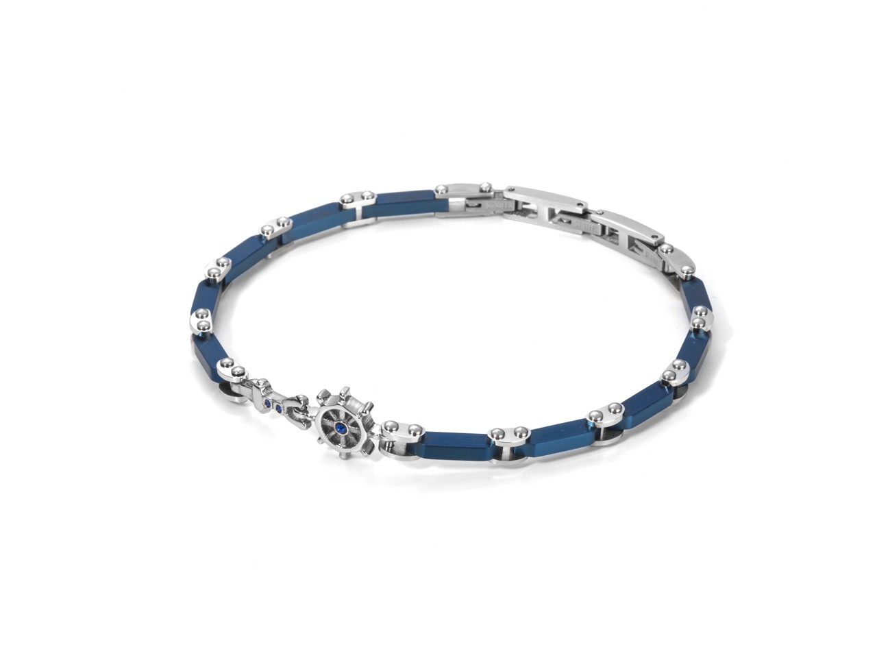 Bracciale Naval in Acciaio blu con timone centrale. - Collezione: Primavera Estate 19