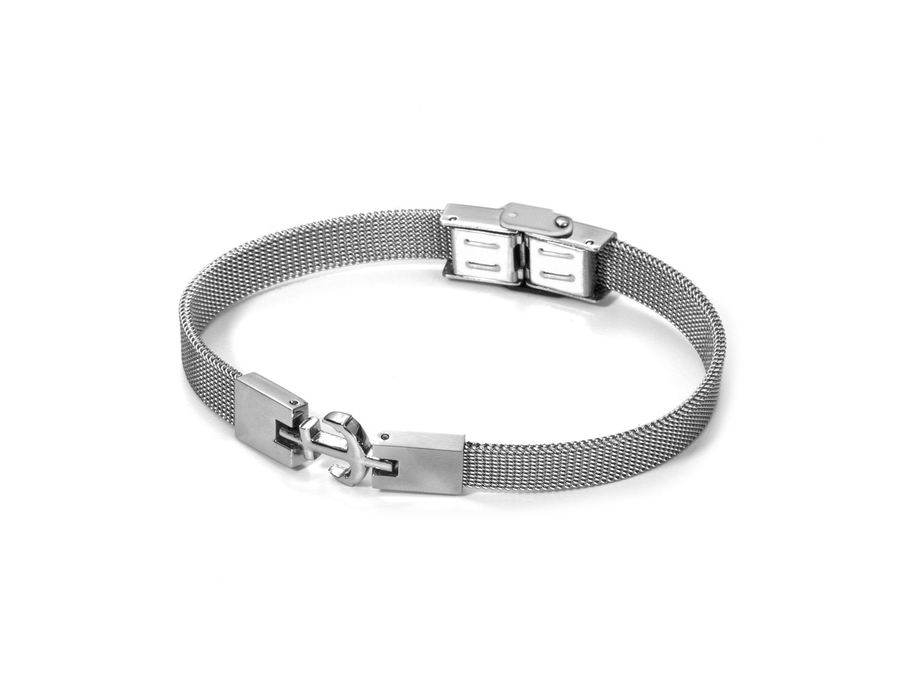Bracciale Seagoing in Acciaio con maglia milano e Ancora centrale . - Collezione: Primavera Estate 19