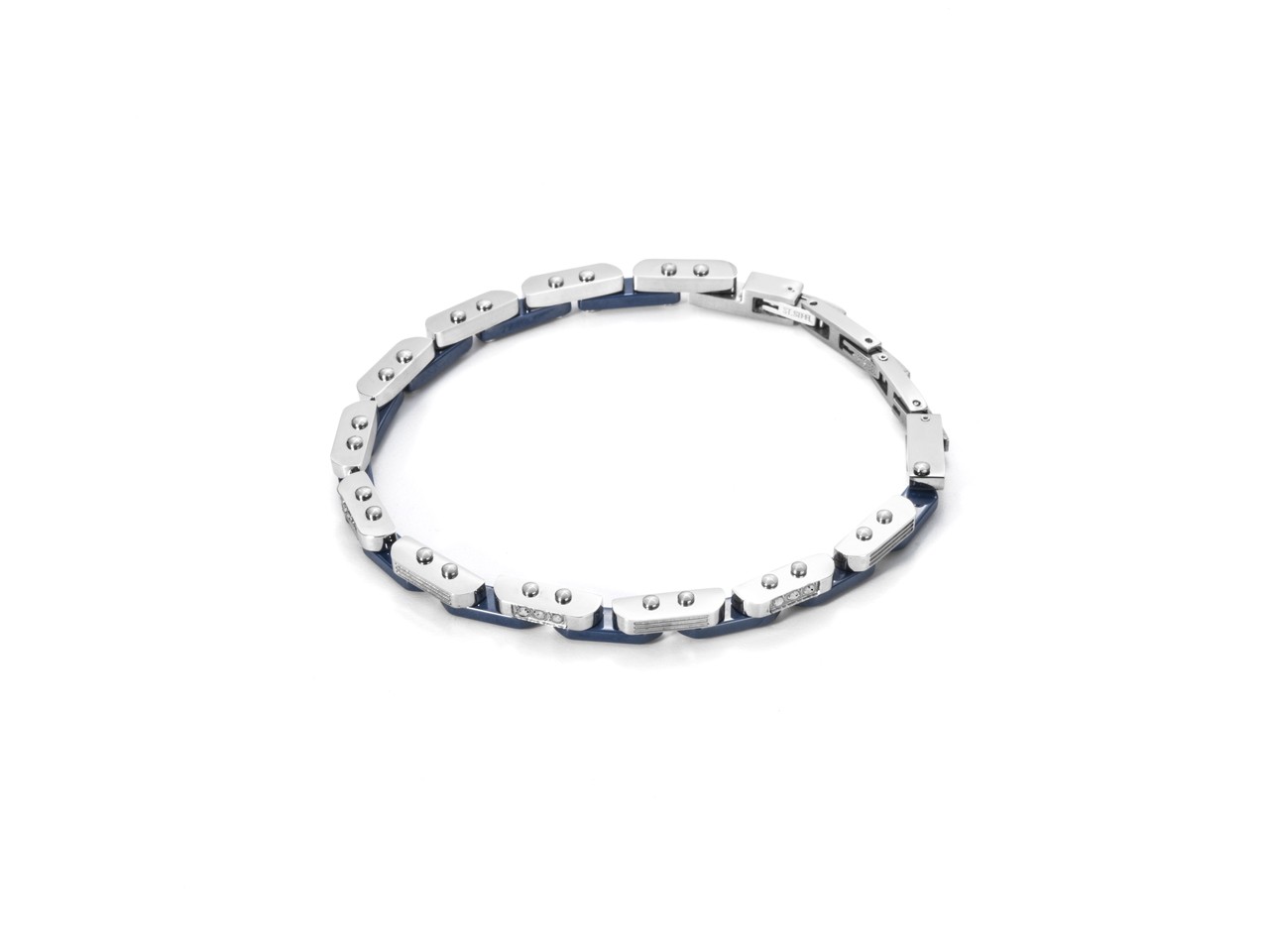 Description: Bracciale collezione Zig Zag in Acciaio e Ceramica Blu, con Zirconi Bianchi. - Collezione: Primaver