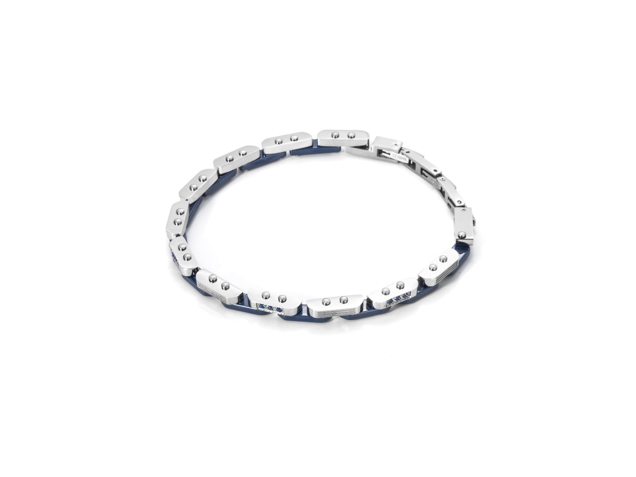 Bracciale collezione Zig Zag in Acciaio e Ceramica Blu, con Zirconi Blu. - Collezione: Primavera Estate 19