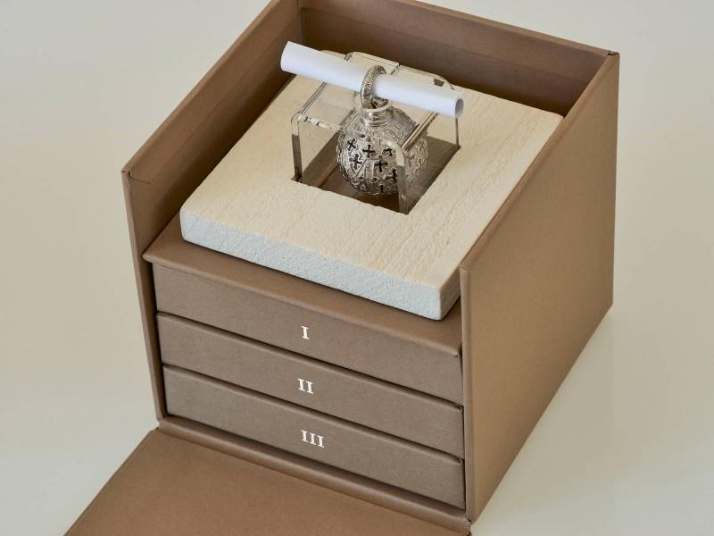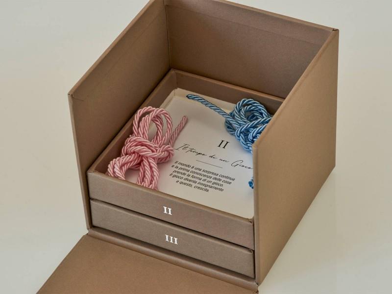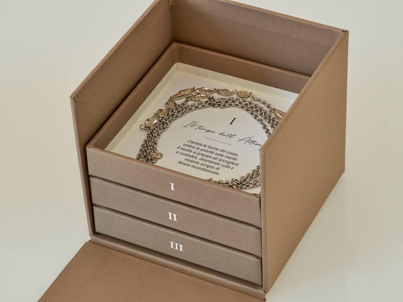 Ciondolo Nativitas in Argento e Collana con frammenti in un esclusivo box per le mamme in attesa composto da 3 cassetti che rappresentano i 3 tempi: