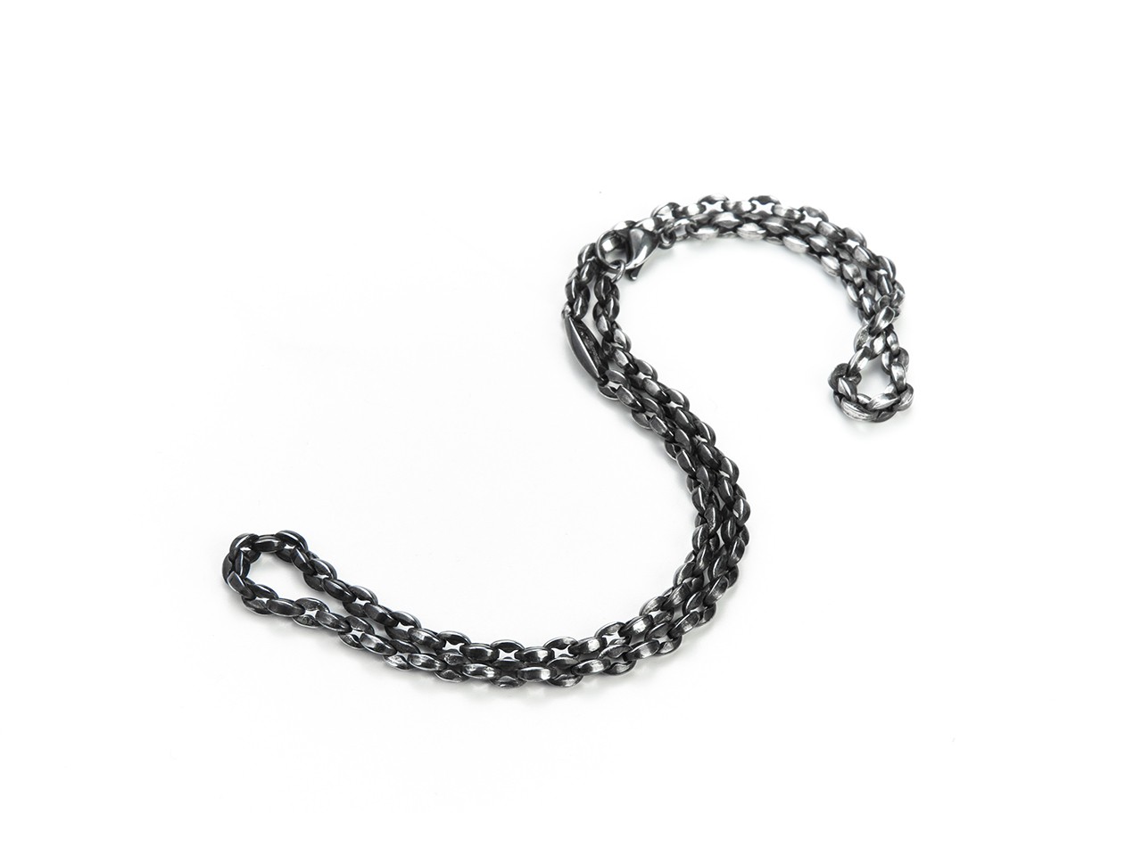 Collana Uomo della collezione Relationship. - Materiale: Acciaio Gun - Logo su Maglia Marina passante - Arricchito da uno Zircone Nero
