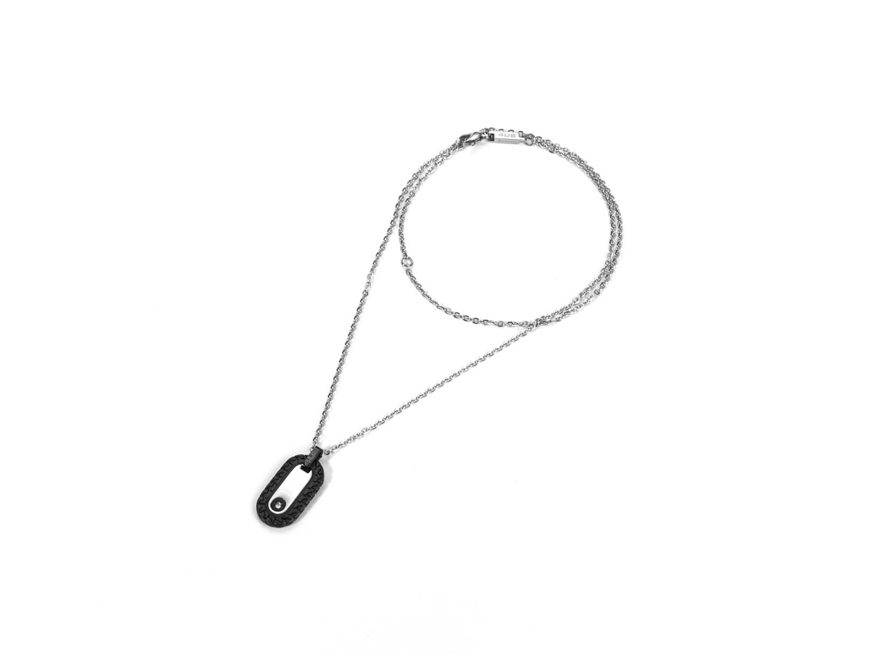 Collana White Point in Acciaio con Targa nera pendente. - Collezione: Primavera Estate 19