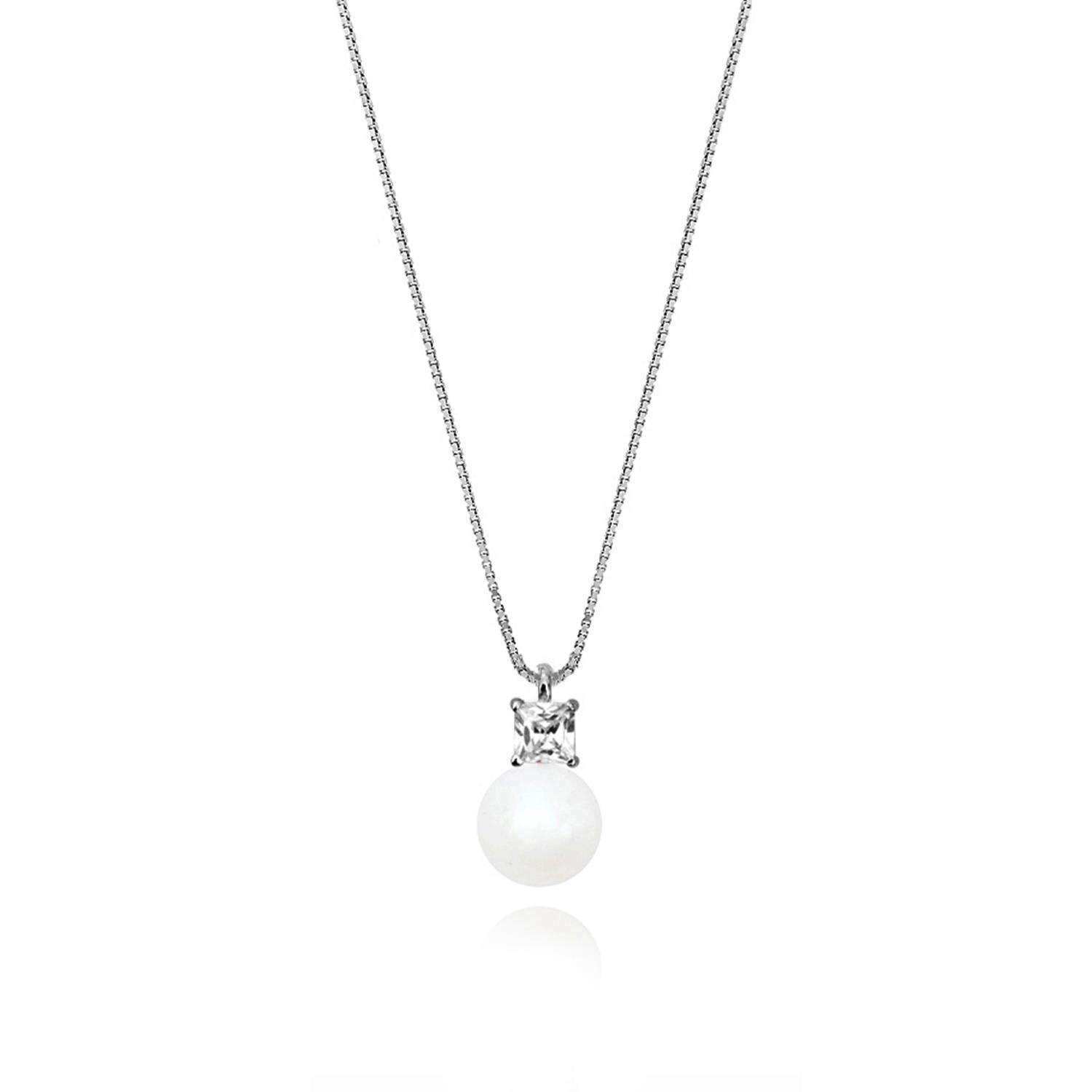 Collana in Oro Bianco18 kt, Perla e Zirconi bianchi