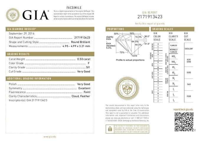 Visitando il sito www.gia.edu ed inserendo il numero del certificato, si possono visualizzare e stampare le carattersitiche della propria pietra.