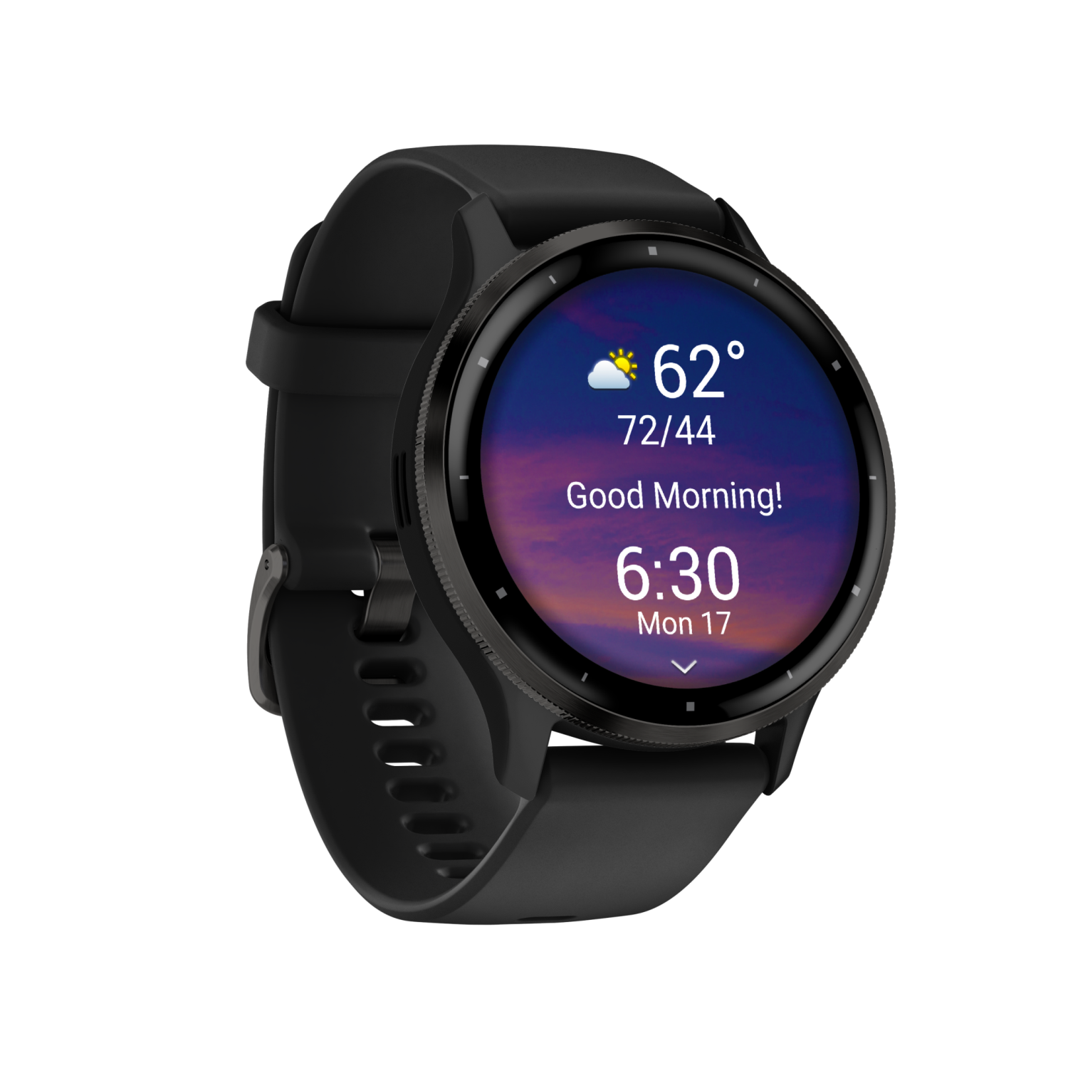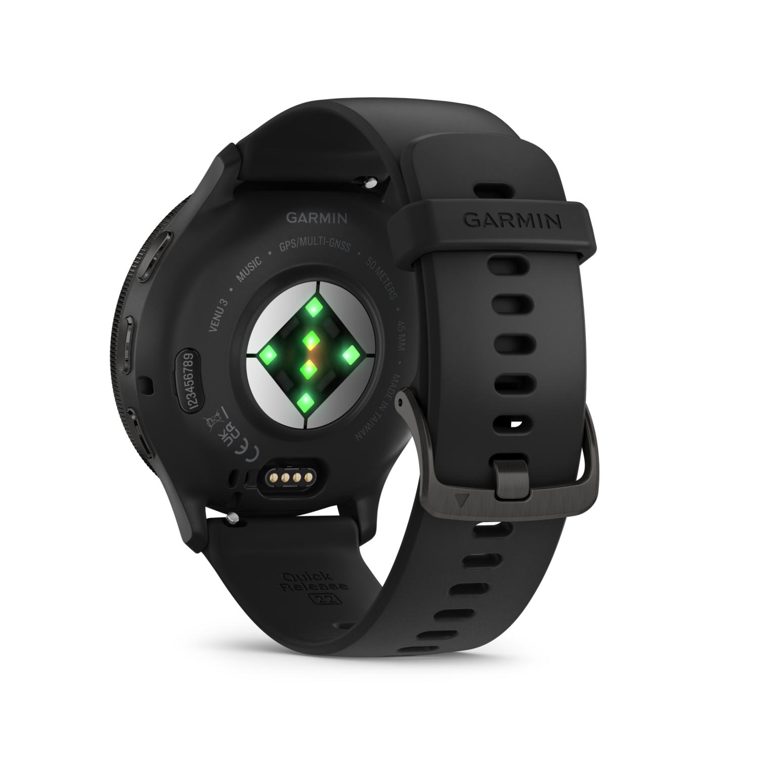 Venu 3, Black con lunetta Slate, cassa in fibra di polimero rinforzato e cinturino in silicone Black.