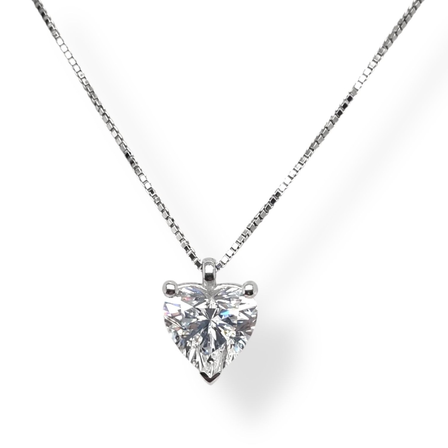Girocollo in Oro Bianco 18 kt con Diamante naturale taglio Cuore 0.70 ct F-VS LASER
