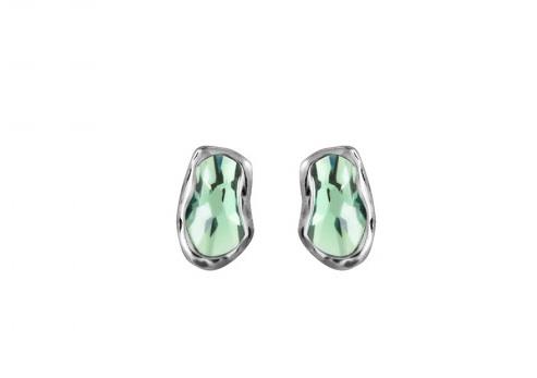 Orecchini piccoli a forma di squama di coccodrillo bagnati in argento 15 micron e cristalli di SWAROVSKI® ELEMENTS di color verde. Realizzato artigianalmente in Spagna.