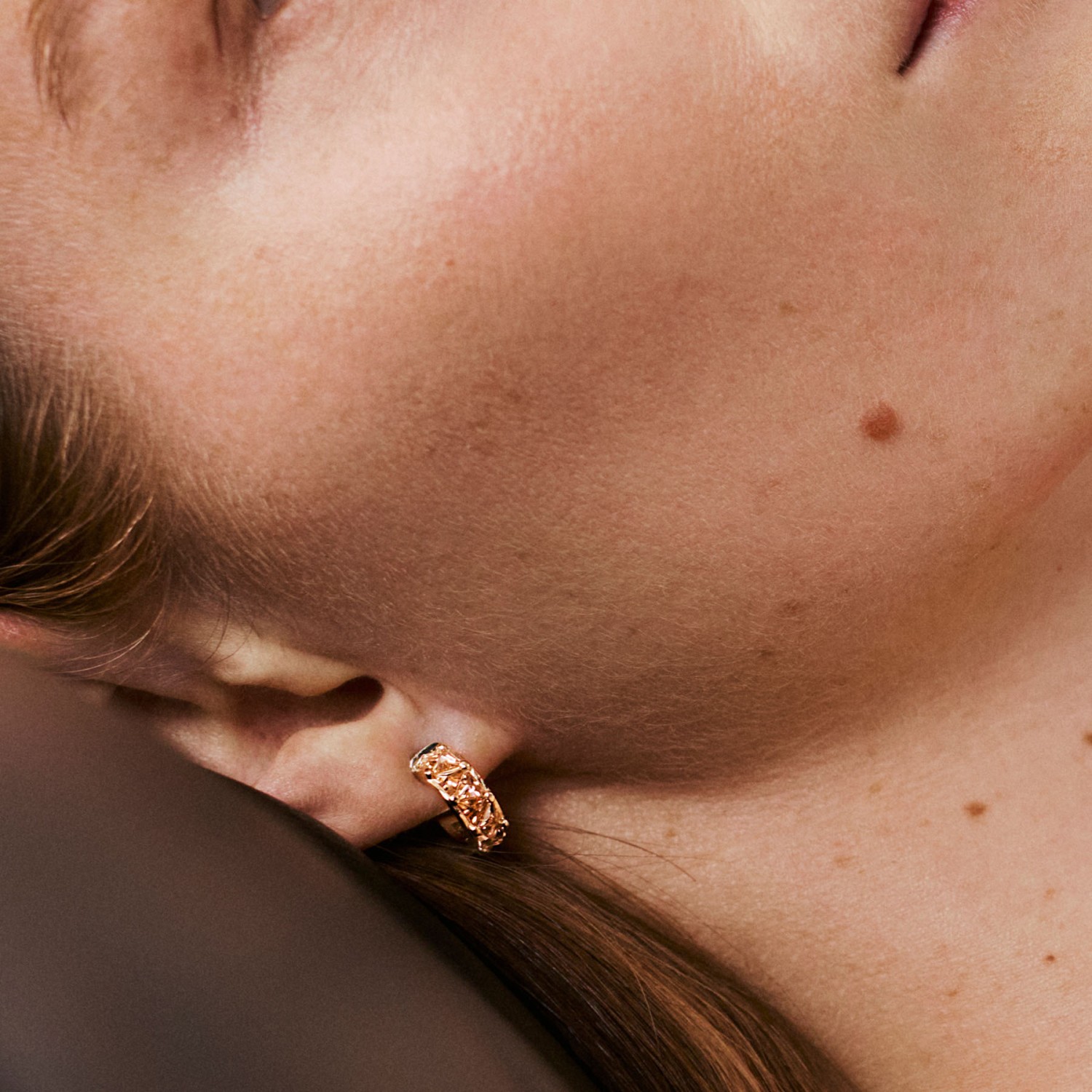 Orecchini cerchietto in argento 925‰, placcatura oro giallo, 22 cubic zirconia champagne