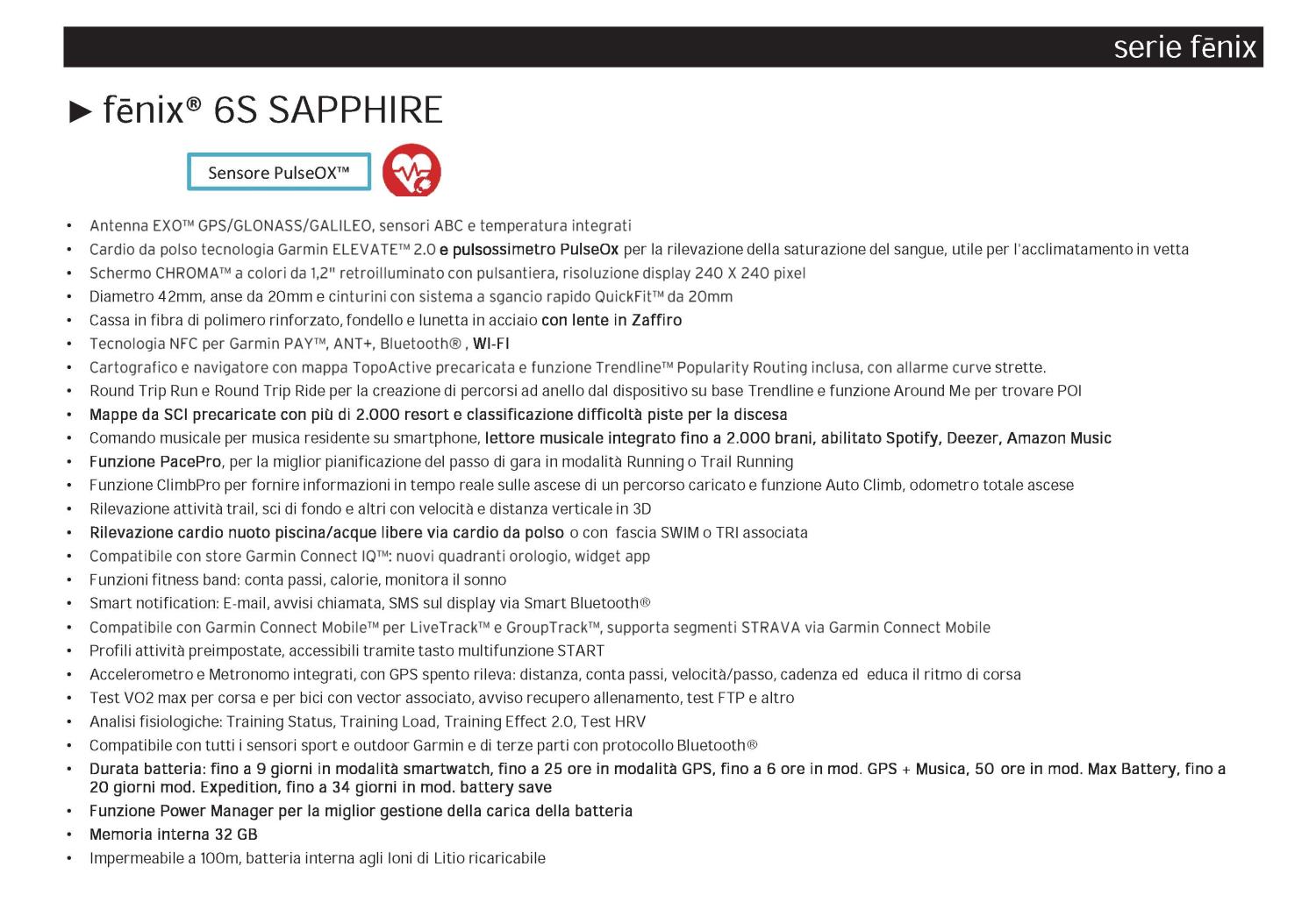 Orologio Garmin - Fenix 6S Pro e Sapphire Edition Ref. 010-02159-37