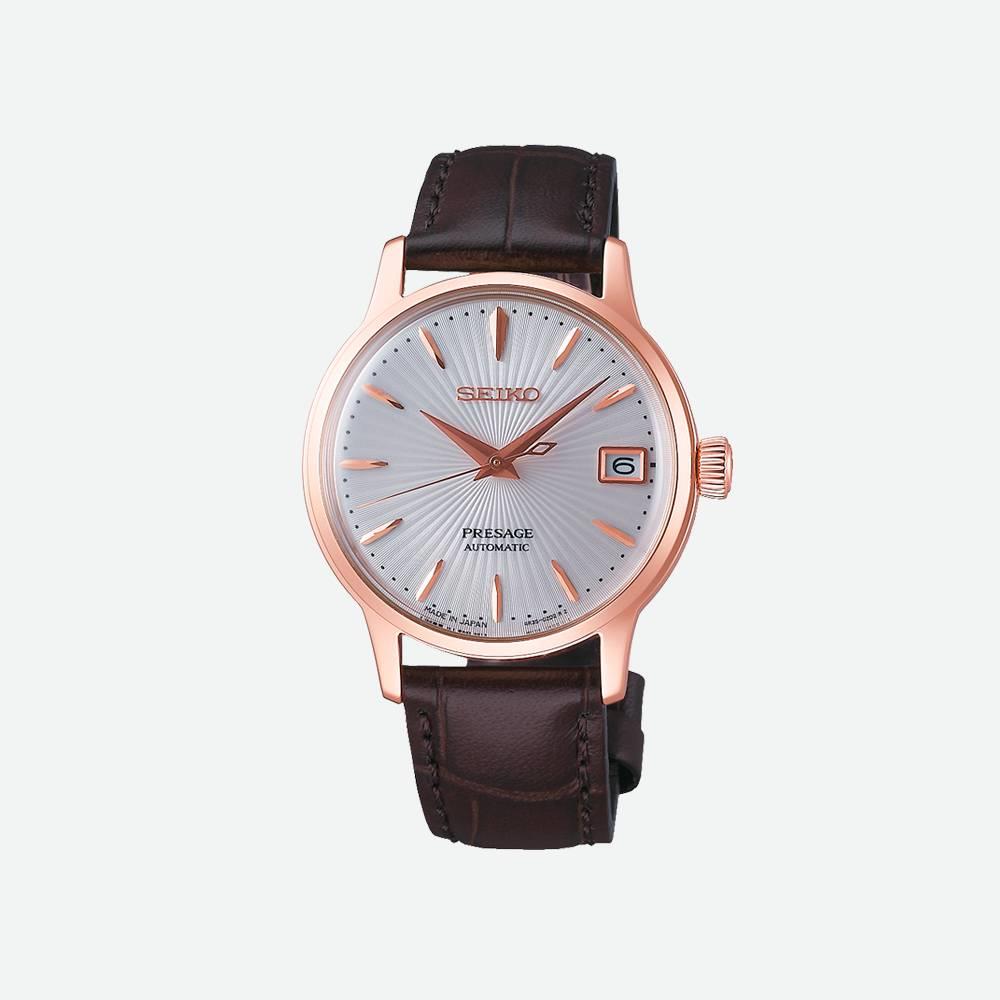 Dotato di una cassa rettangolare, l’Ardmore Quartz mostra un approccio versatile e art déco. Ispirata alla freschezza dei fiori appena sbocciati, questa versione in acciaio vanta un cinturino in pelle rosa tenue e un quadrante argento con finitura soleil con numeri romani abbinati per un tocco di fascino femminile e uno stile fresco.