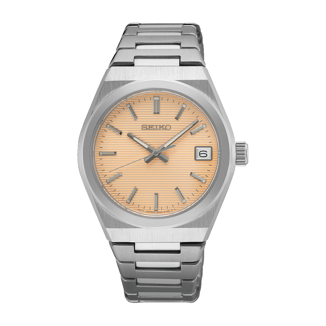 Ispirato al modello del 1970, con il famoso bracciale integrato nella cassa, questo orologio, già disponibile in versione maschile, viene proposto in un diametro più contenuto di 34 mm per adattarsi con grazia ai polsi delle signore. Presenta funzioni a 3 lancette e datario a finestrella a ore 3. La versione SUR577P1 presenta uno splendido quadrante rosa con striature orizzontali.
