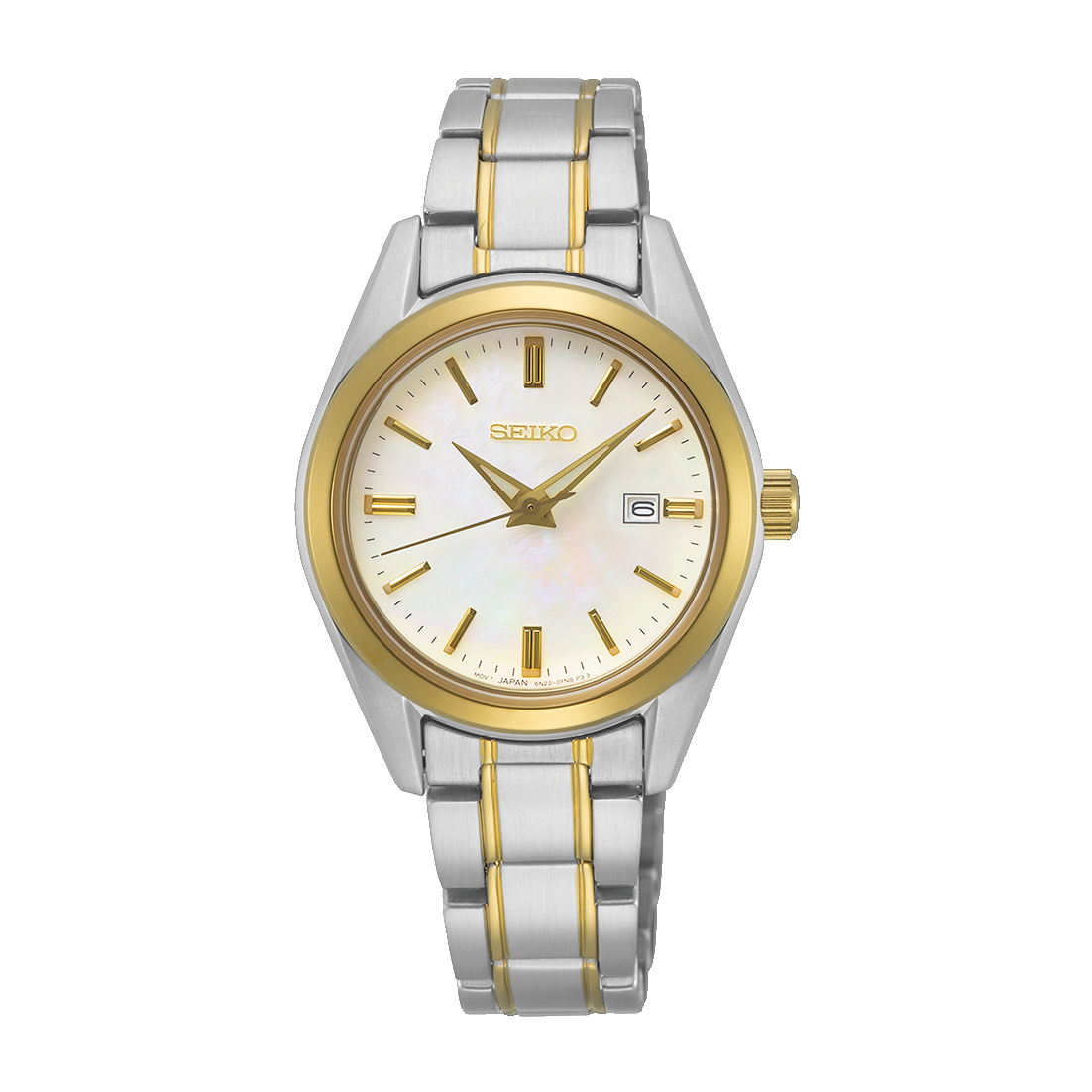 Accessorio ideale da abbinare a outfit raffinati, questo modello si distingue per la purezza della forma della cassa e del quadrante in madreperla. Il modello in acciaio inossidabile è impreziosito da un rivestimento dorato sulla lunetta, la corona e alcune maglie del bracciale, per un look chic, ma quotidiano. Tanto elegante quanto solido, è caratterizzato da una resistenza all'acqua di 10 bar ed è dotato di vetro zaffiro antigraffio.