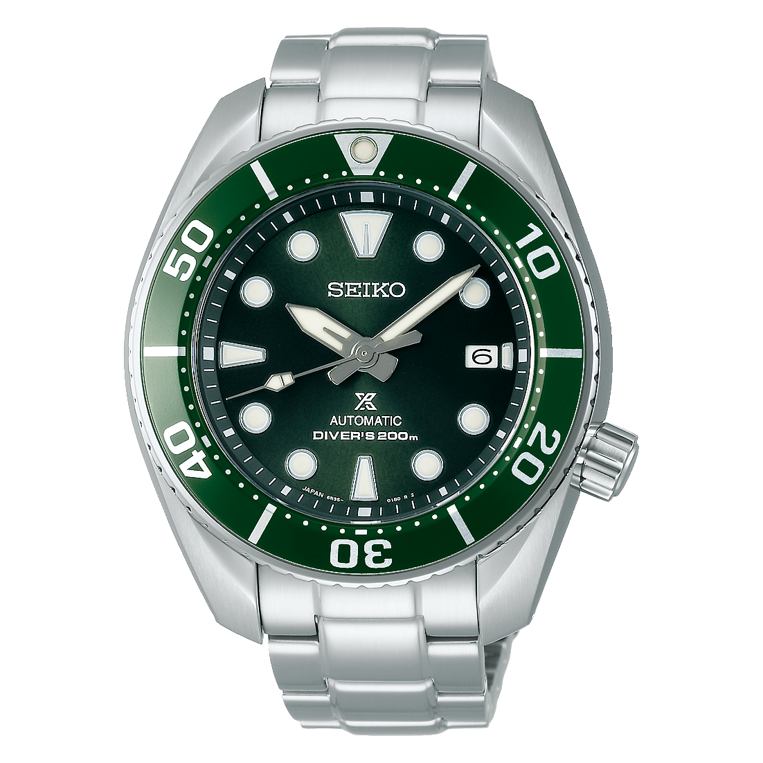 Il verde del quadrante e della lunetta unidirezionale dona un grintoso tocco di colore a questo orologio subacqueo professionale PROSPEX, che conserva comunque un aspetto elegante e sobrio. Il fondello e la corona a vite proteggono dall'acqua il movimento automatico di questo modello, nato dal know-how manifatturiero di Seiko. Questo robusto orologio ad alte prestazioni incarna perfettamente lo spirito dei diver della collezione PROSPEX.