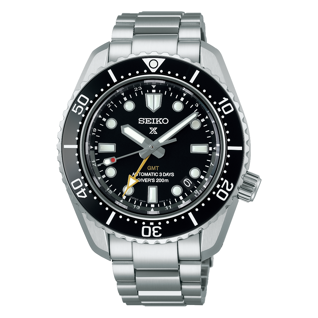 Seiko ha presentato un movimento della collaudata famiglia 6R con funzione GMT e riserva di carica estesa a 72 ore. Il calibro 6R54 è stato presentato in questa creazione Prospex SPB381J1, una moderna reinterpretazione del classico modello del 1968. L'orologio è impermeabile fino a 200 metri, le lancette e i 12 indici sono dotati di Lumibrite e la lunetta unidirezionale ha un inserto luminoso. È montato su un inedito bracciale a tre maglie in acciaio inossidabile con un profilo sottile che offre una vestibilità solida e confortevole al polso.