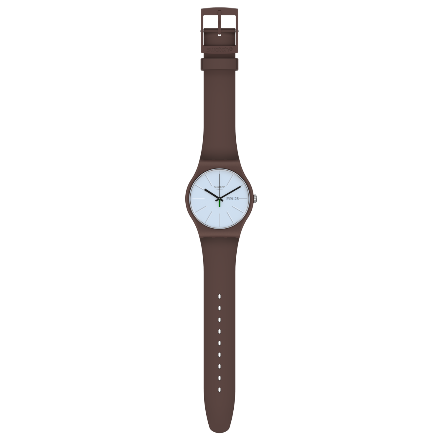 Cassa in Plastica di origine biologica di colore Marrone e di forma Rotonda -Cinturino in PLASTICA MORBIDA DI ORIGINE BIOLOGICA di colore Marrone