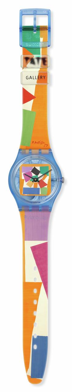 Questo orologio della Swatch x Tate Gallery Collection ha una cassa trasparente blu opaco biosourced e un vetro biosourced. Il quadrante presenta l'opera d'arte di Henri Matisse The Snail (La lumaca) stampata nella sua interezza e le lancette nere di ore e minuti. Il cinturino trasparente e lucido presenta una stampa dell'opera d'arte e la firma dell'artista. Sui passanti trasparenti e lucidi è stampato il logo della Tate Gallery. Henri Matisse The snail 1953. © Succession Henri Matisse/DACS 2024. Photo: Tate / © Tate