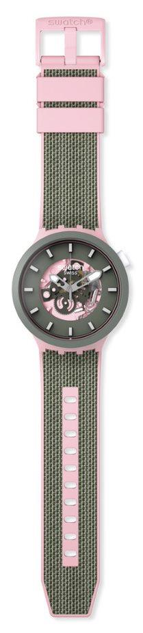 Cassa in Materiale di origine biologica di colore Rosa e di forma Rotonda -Cinturino in SILICONE di colore Rosa con tessuto grigio scuro