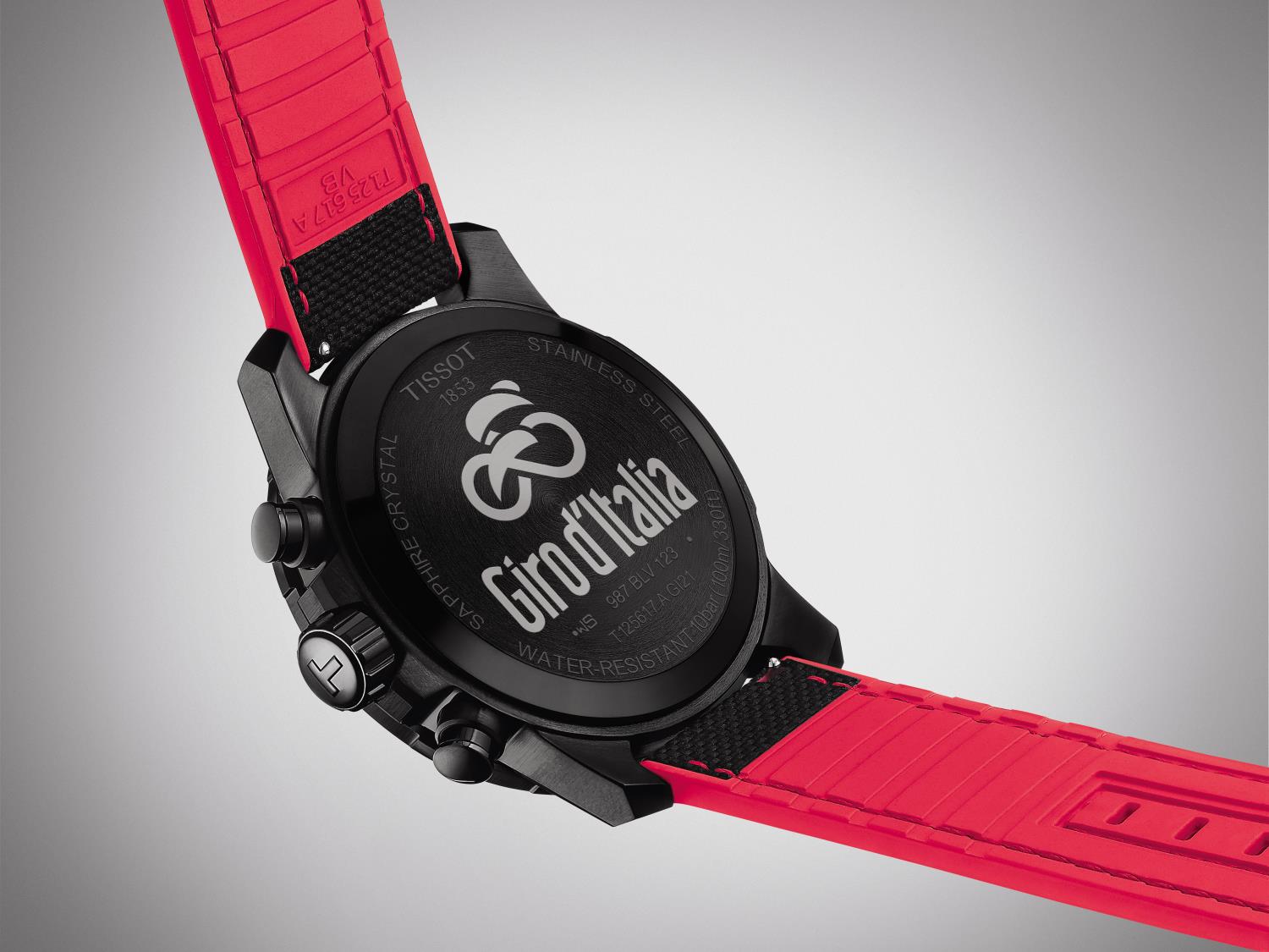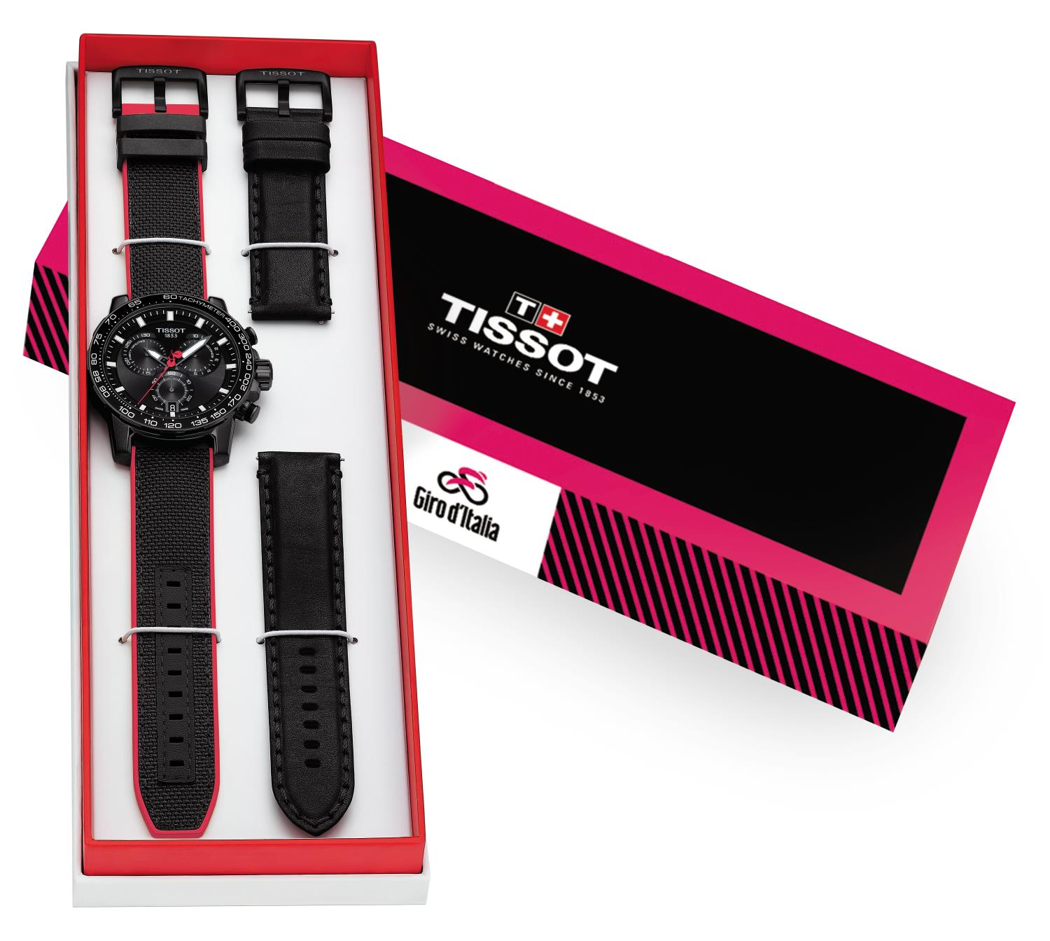 Il Tissot SuperSport Chrono Special Edition Giro d'Italia, è un orologio ideale per uomini chic e appassionati di ciclismo. I due cinturini, uno in pelle nero l'altro in tessuto e gomma, consentono l'intercambiabilità in ogni circostanza. Tissot vuole rendere omaggio alla partnership con il Giro della penisola. Il logo inciso sul fondello, così come la bicicletta alla base della lancetta dei secondi, rendono questo orologio l'accessorio esclusivo e unico per gli amanti della corsa in rosa.