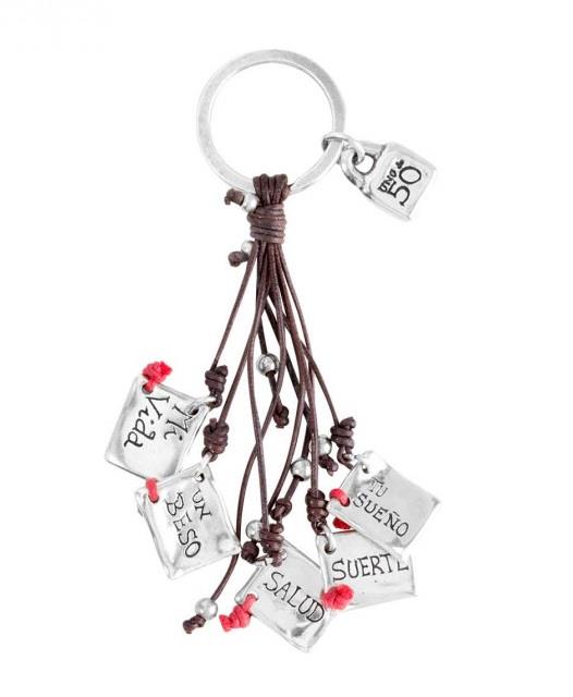 Portachiavi in pelle marrone e metallo argentato. Realizzato artigianalmente in Spagna.