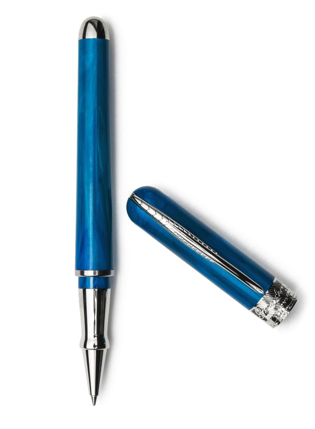 Questa rollerball è realizzata in Ultraresina, compound di resina e madreperla che rende la penna brillante e resistente agli urti. La veretta con lo Skyline di Firenze è un omaggio al legame tra la città e il brand, mentre la clip è ispirata alla piuma, antico strumento di scrittura.