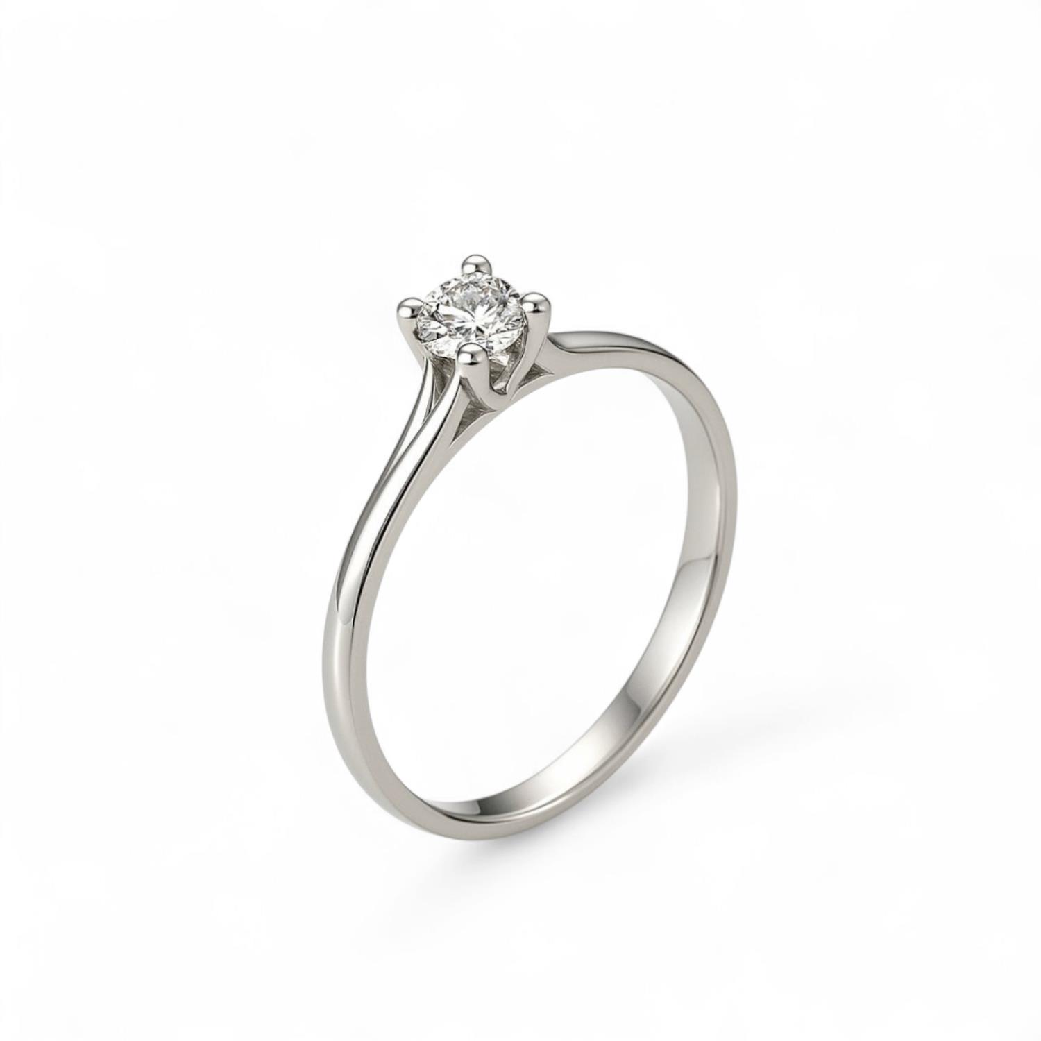 Solitario 4 punte Oro Bianco con Diamante