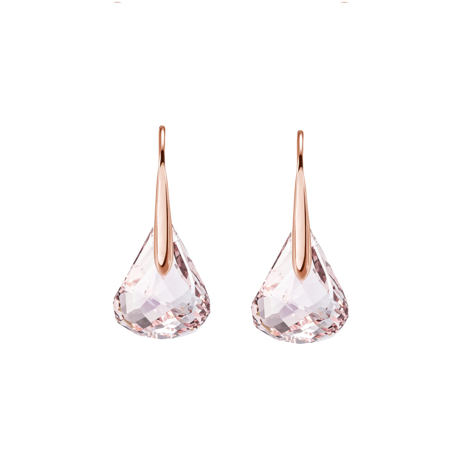 Di evidente ispirazione naturale, la forma pura di questi orecchini a buco rimanda alle gocce d'acqua. Un grande cristallo Crystal Blush a taglio esclusivo Toupie si libera luminoso dagli orecchini placcati oro rosa. Indossati con la collana della stessa linea formano un insieme di raffinata femminilità. Misura: 2.7 cm