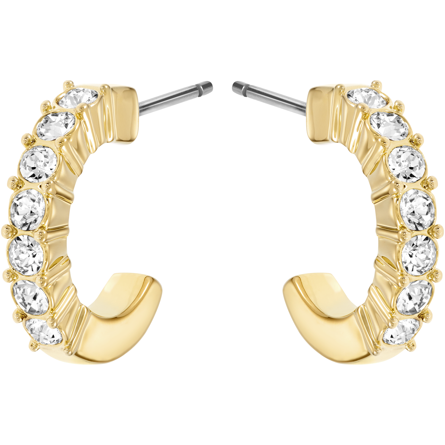 Questa delicata coppia di orecchini con placcatura in oro conferisce eleganza a qualsiasi mise. Ogni orecchino è impreziosito con clear crystal pavé per una brillantezza a tutto tondo. Lunghezza: 1.5 cm