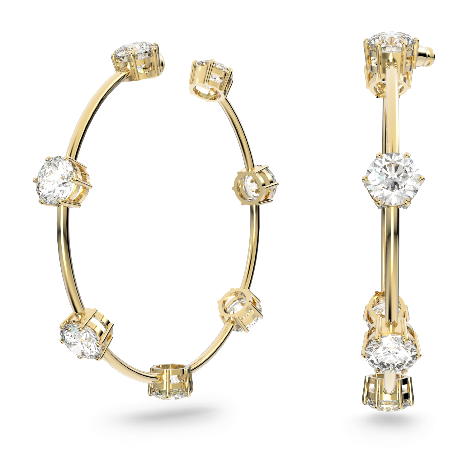 Swarovski - Orecchini a cerchio Constella, Taglio tondo, Medi, Bianchi, Placcato in tono oro lucido Ref. 5622722